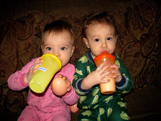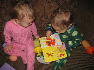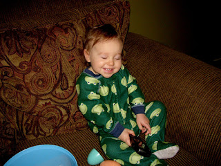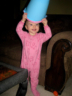 We did actually take some pictures on Easter Morning.... Yes, I am a little over due in posting them but here they are! They did manage to get some eggs in their baskets, but it was just as much fun for them to dump them out of the baskets too! We didn't do real eggs this year, next year we will get out the ol' PAAS Egg Dye and Vinegar! Good times!