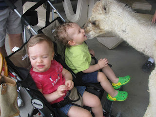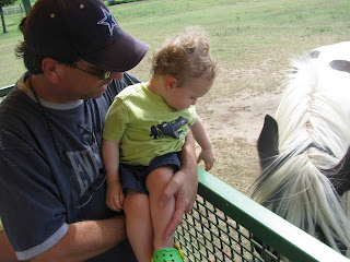 We took the kids to an animal refuge. They loved the animals and weren't scared at all! I was only scared of the hornet that decided to take the tram ride with us! Jimmy kept saying "honey, he's not going to bother you!" Well, a few minutes later I hear a loud scream.... that dang hornet stung a little 5 year old boy!! OUCH!! Other than that, we had so much fun watching the babies see these animals up close and personal.